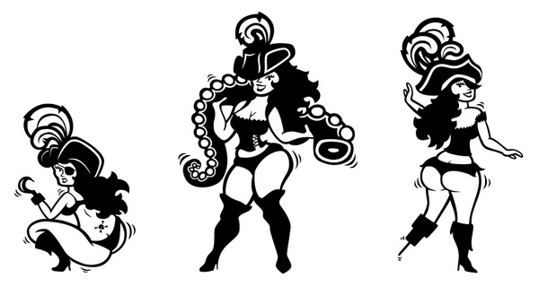 Series of three symbols representing a different interpretation of Pirate's Booty.