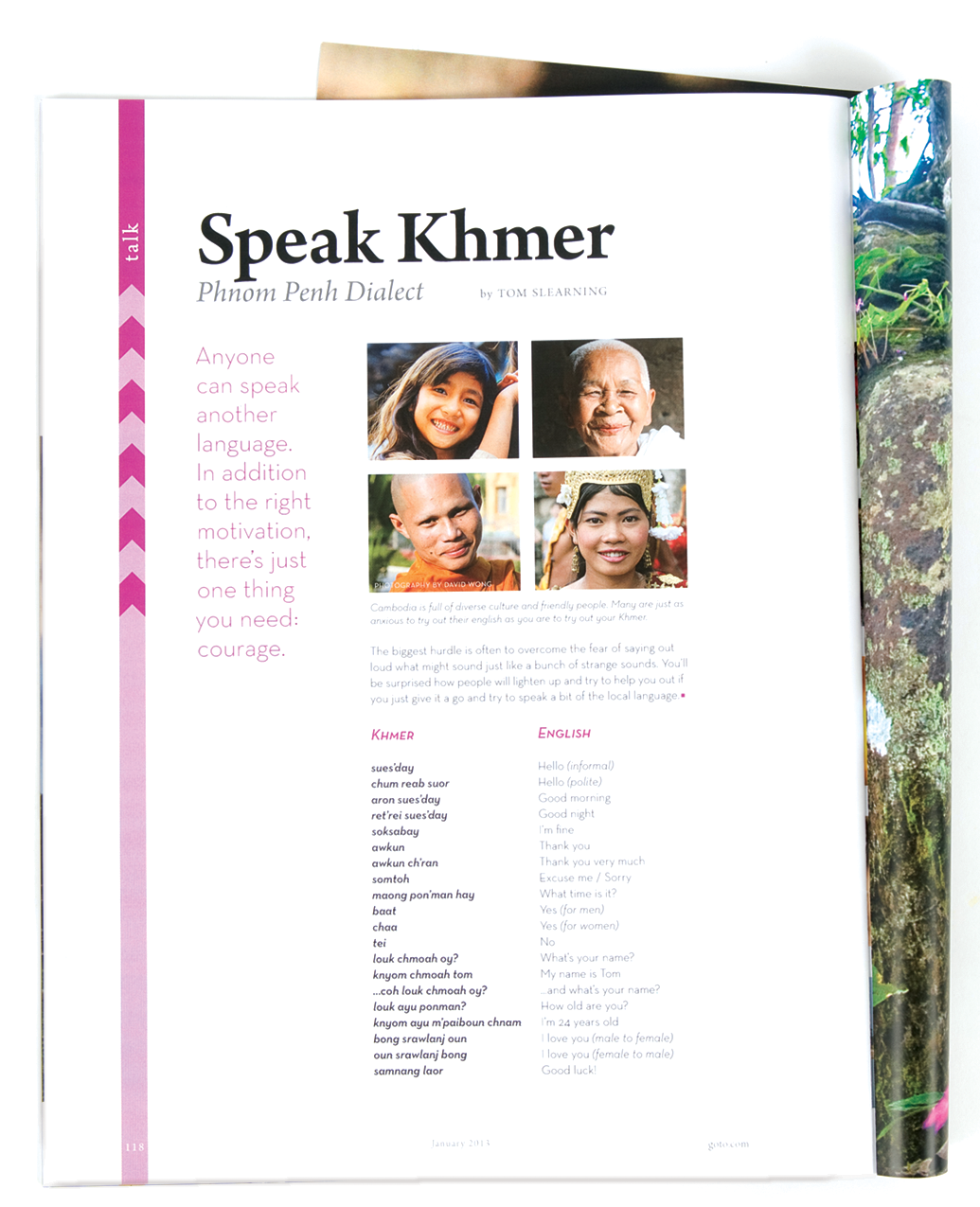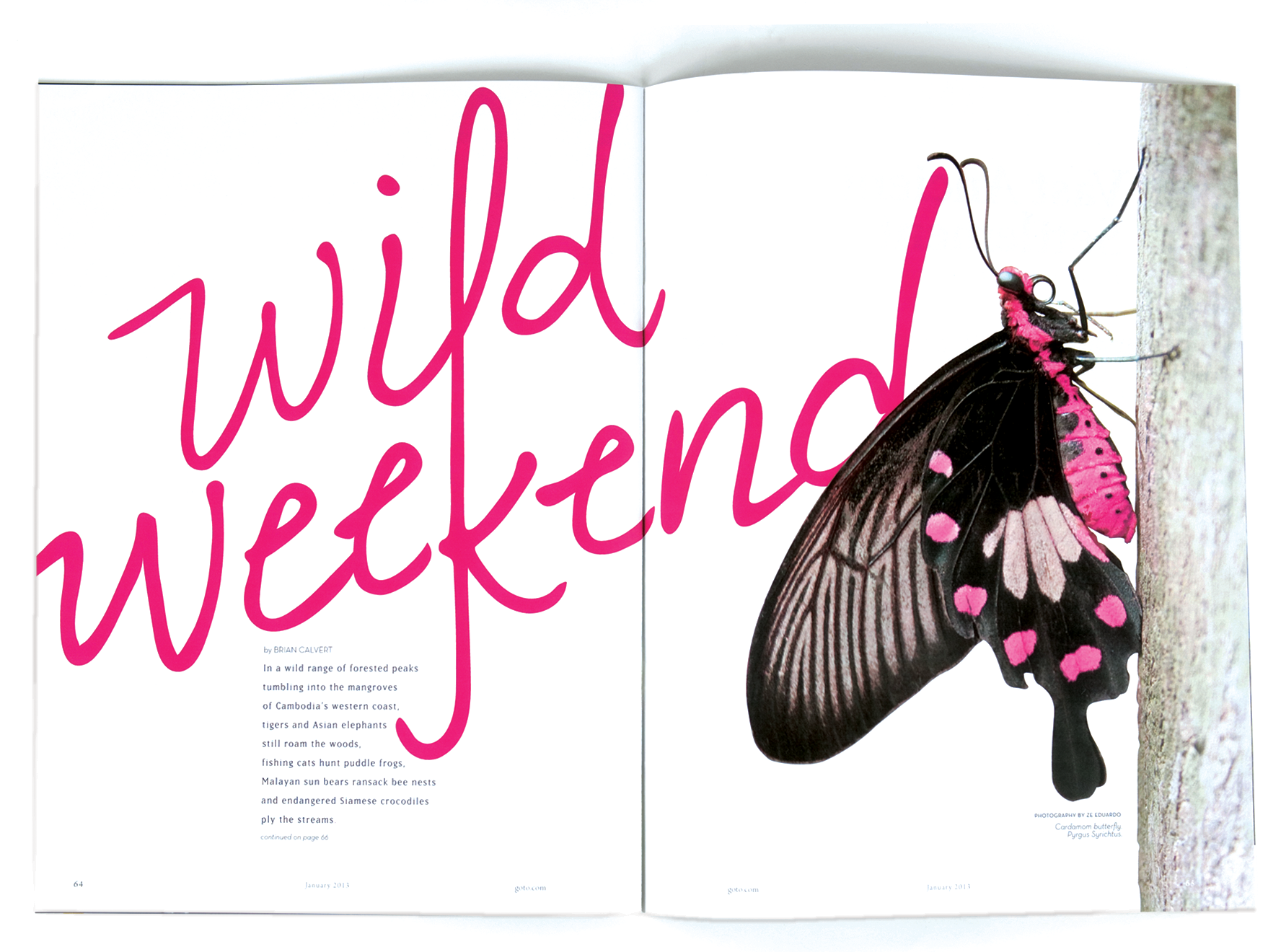 Publication design—including nameplate, departments, grid system & feature spreads—for a travel magazine, targeting American travelers interested in high end vacations. The magazine features a different foreign location each month.