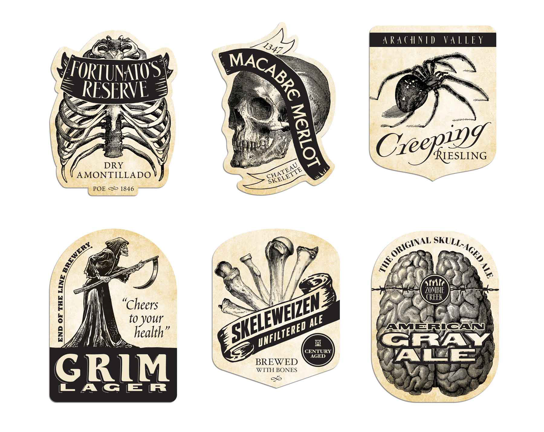 Created twelve original diecut sticker labels for Wal-mart's Halloween Party Supplies.