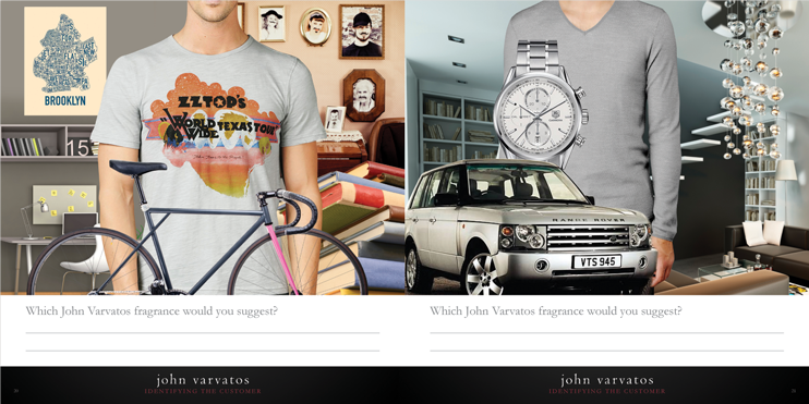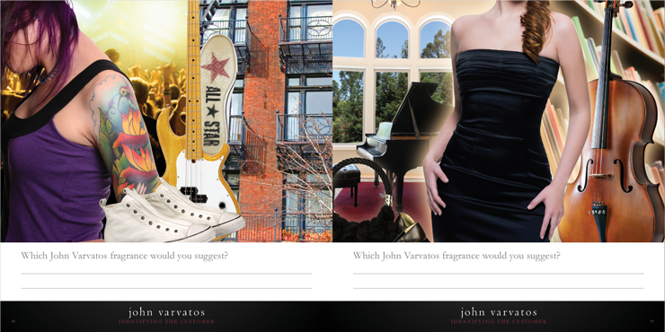 Training workbook & animated PowerPoint Presentation for the full line of John Varvatos Fragrances. Used internationally by Elizabeth Arden Fragrance franchises to train salespeople on the brand, fragrance attributes and customer preferences.